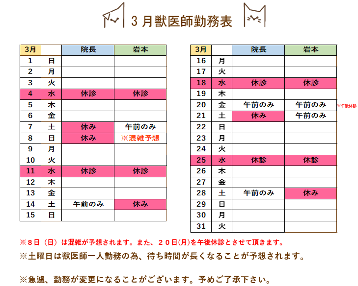 この日は混雑が予想される為、お時間に余裕を持ってご来院頂けると